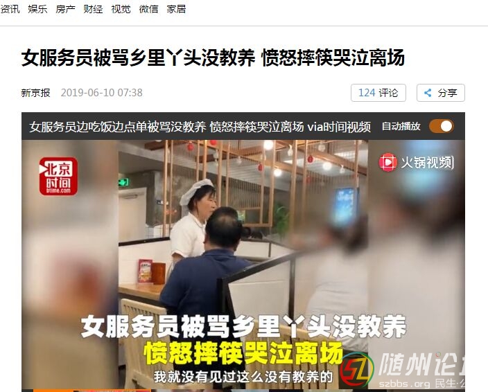 【資訊】女服務(wù)員被罵鄉(xiāng)里丫頭沒教養(yǎng) 憤怒摔筷哭泣離場