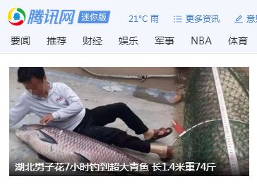 【大楚資訊】 湖北荊門一男子花7小時釣到超大青魚 長1.4米重74斤